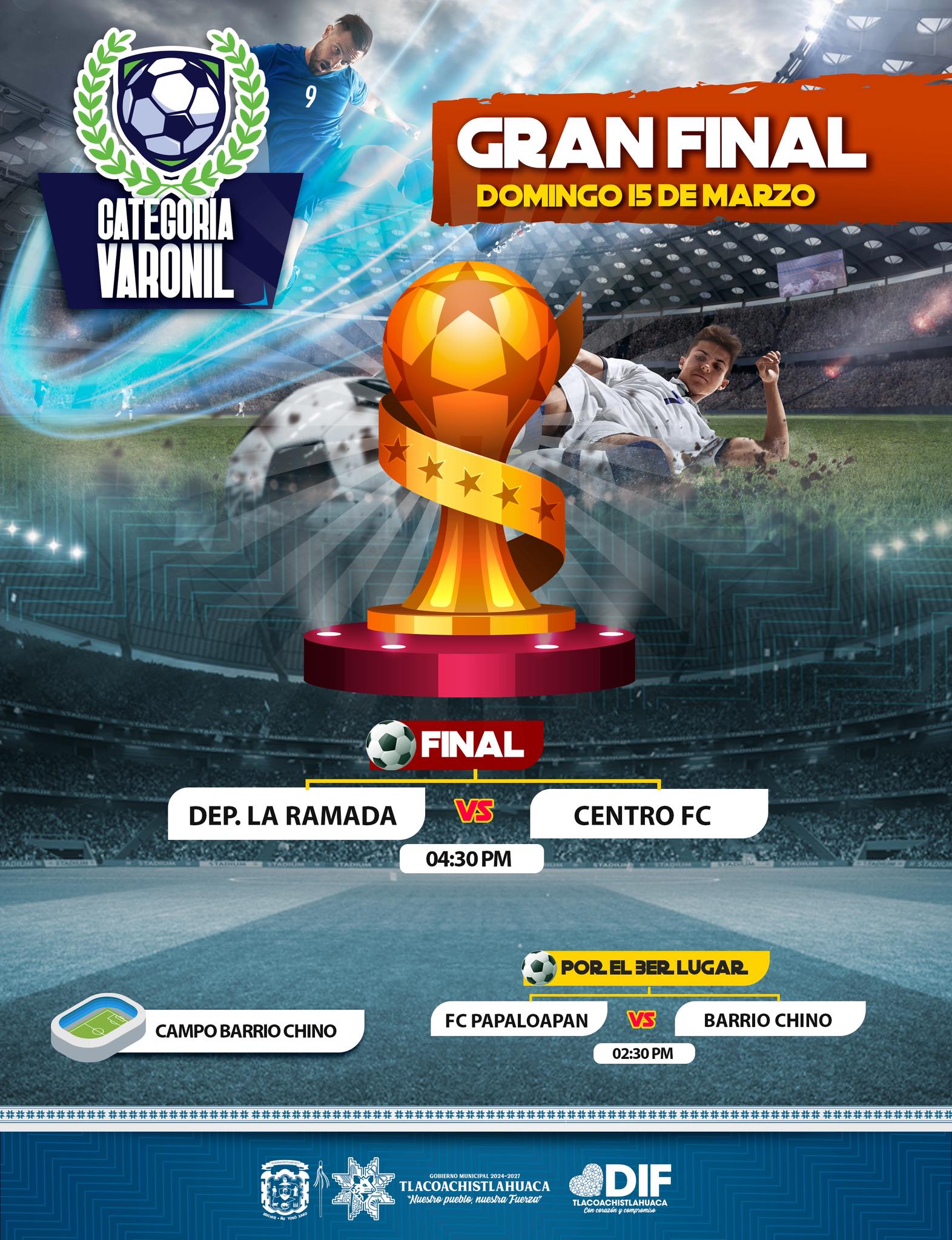 El H. Ayuntamiento de Tlacoachistlahuaca, que encabeza el Arq. Emmanuel Cuevas Rodríguez, a través de la Dirección de Deporte y Juventud, invita a toda la ciudadanía a asistir y disfrutar de la gran final de la Liga Varonil de Fútbol Soccer.