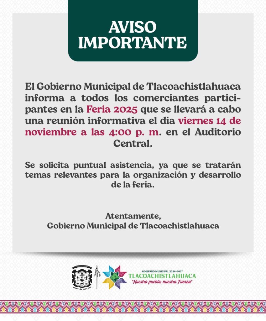 Para mayores informes, favor de acudir o comunicarse al DIF Municipal de Tlacoachistlahuaca.
