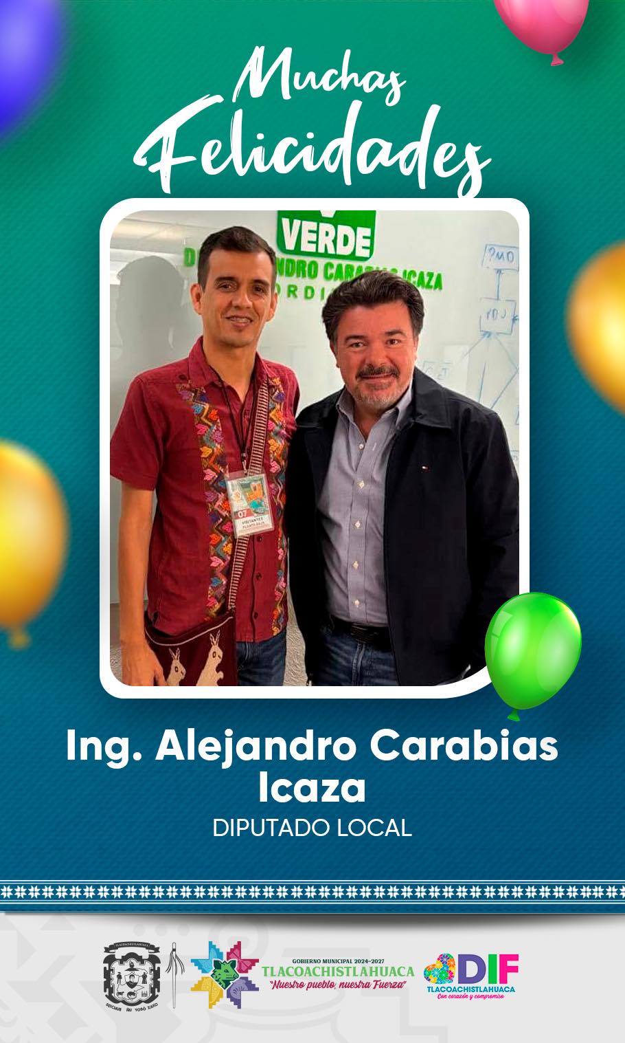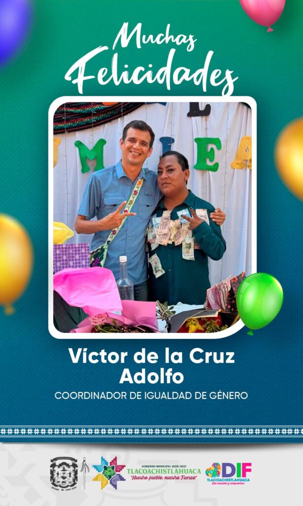 El Gobierno Municipal de Tlacoachistlahuaca felicita con aprecio a Víctor de la Cruz Adolfo, coordinador de Igualdad de Género, por motivo de su cumpleaños.