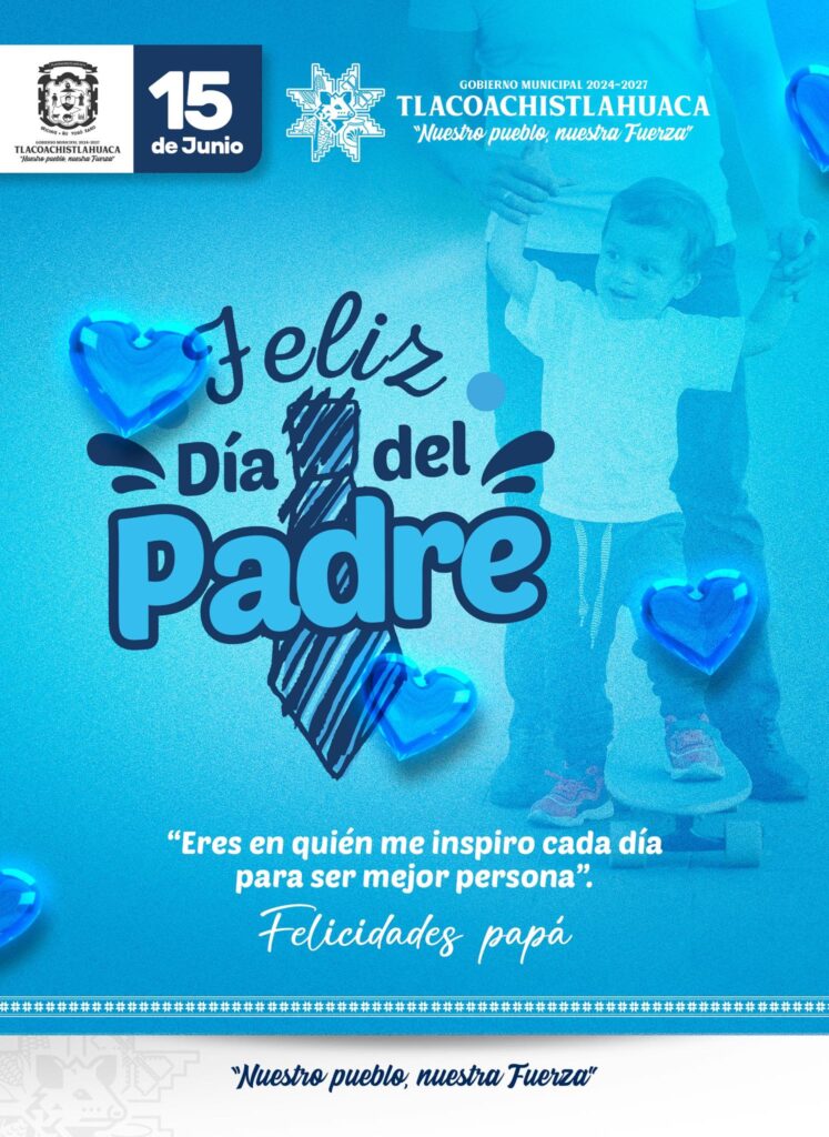 El Gobierno Municipal de Tlacoachistlahuaca, que preside el Arq. Emmanuel Cuevas Rodríguez, extiende una afectuosa felicitación a todos los padres en su día.