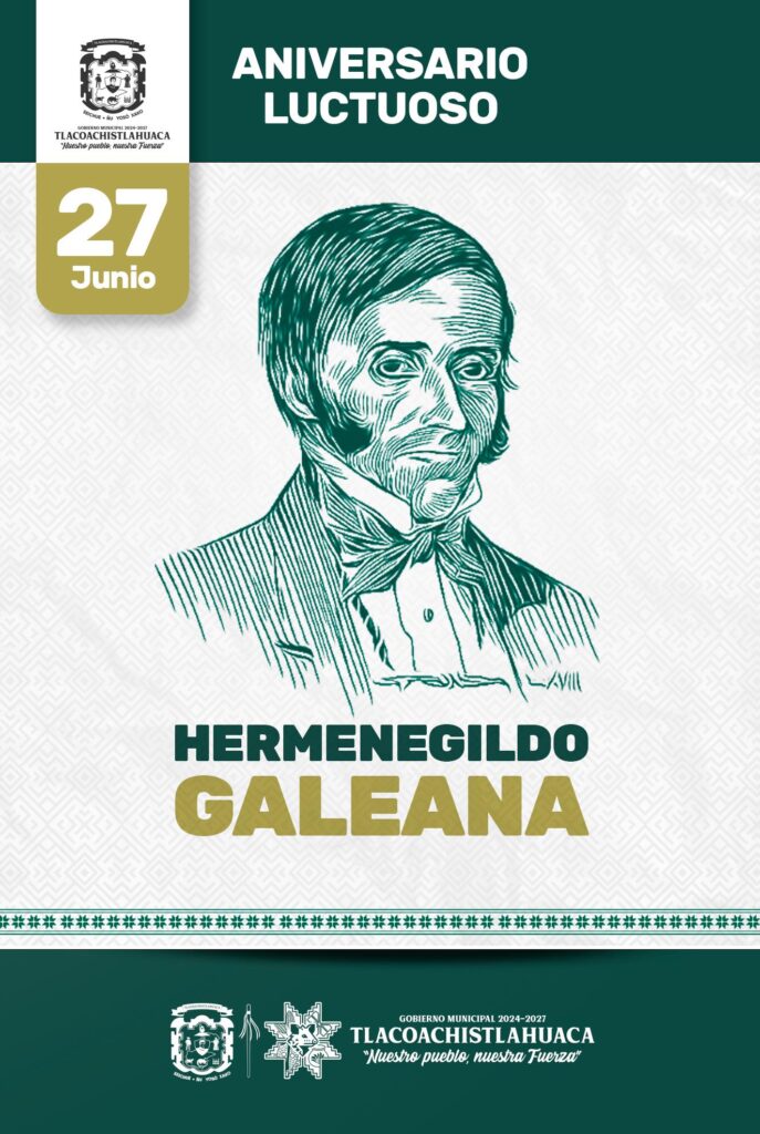 El H. Ayuntamiento de Tlacoachistlahuaca conmemora con respeto y orgullo el aniversario luctuoso del general Hermenegildo Galeana, valiente insurgente y brazo derecho de José María Morelos, cuya entrega por la libertad y la justicia sigue siendo un ejemplo para nuestro pueblo y nuestra nación.