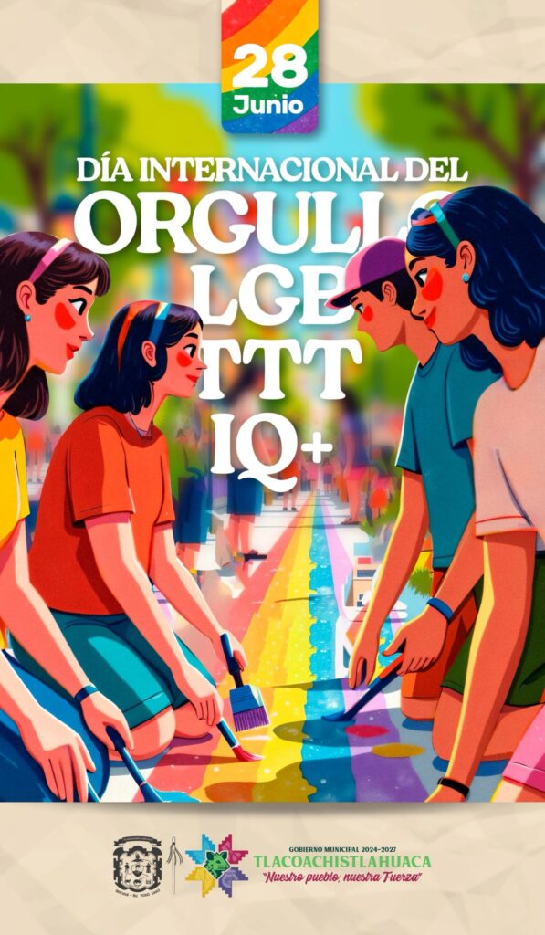 El Gobierno Municipal de Tlacoachistlahuaca se une a la conmemoración del Día Internacional del Orgullo LGBTTTIQ+, reconociendo la lucha, la dignidad y los derechos de todas las personas que integran esta comunidad.