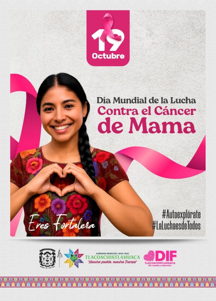 En este día tan significativo, el Gobierno Municipal de Tlacoachistlahuaca, que encabeza el Arq. Emmanuel Cuevas Rodríguez, se une a la conmemoración del Día Mundial de la Lucha contra el Cáncer de Mama, una fecha que nos recuerda la importancia de la prevención, la detección oportuna y el acompañamiento solidario a todas las mujeres y familias que enfrentan esta enfermedad.
