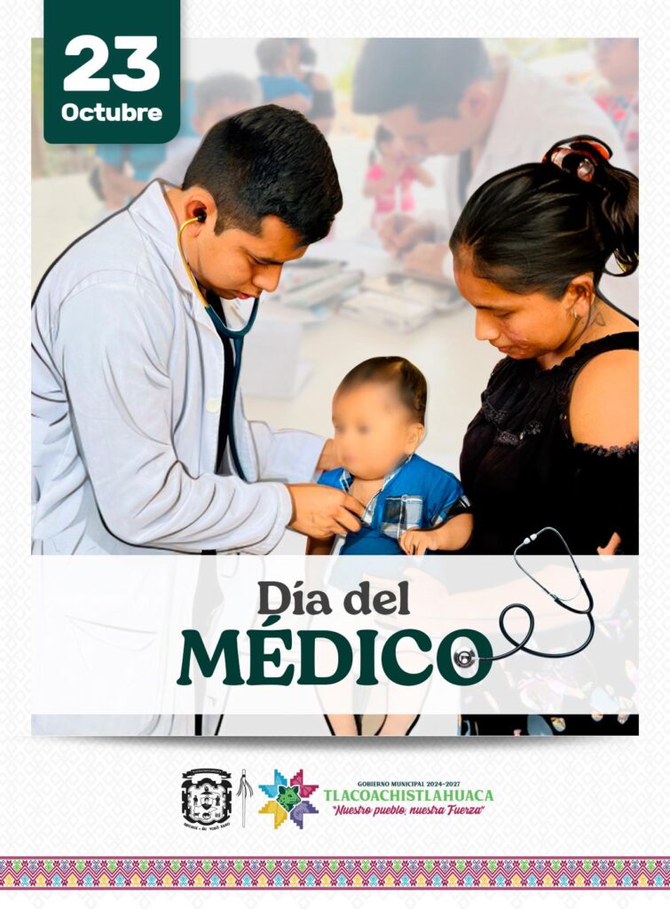 El Gobierno Municipal de Tlacoachistlahuaca, encabezado por el Arq. Emmanuel Cuevas Rodríguez, expresa su más profundo reconocimiento y gratitud a todas las médicas y médicos que, con pasión, entrega y compromiso, dedican su vida al cuidado de la salud y al bienestar de las familias tlacoachistlahuaquenses.