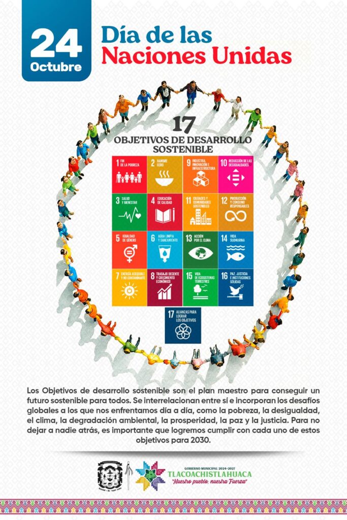 Hoy, 24 de octubre, el Gobierno Municipal de Tlacoachistlahuaca se une a la conmemoración del Día de las Naciones Unidas, fecha que nos invita a reflexionar sobre la importancia de la paz, la cooperación y el respeto entre los pueblos del mundo.