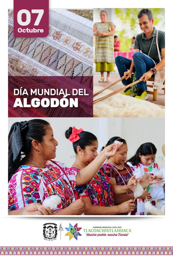 En el marco del Día Mundial del Algodón, el Gobierno Municipal de Tlacoachistlahuaca, que encabeza el Arq. Emmanuel Cuevas Rodríguez, se une a esta conmemoración destacando la importancia histórica, cultural y económica de este valioso recurso natural.