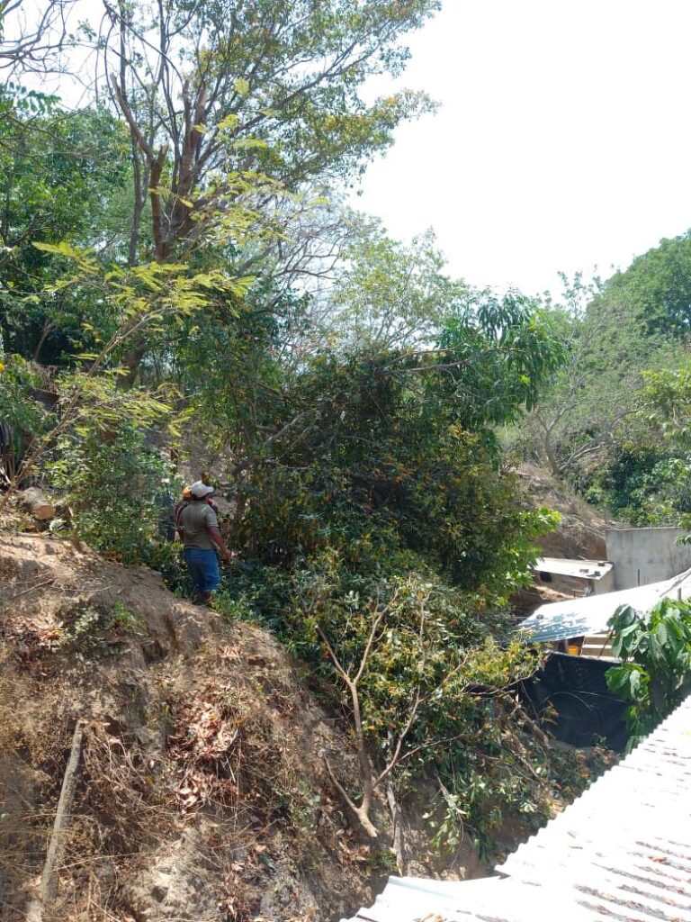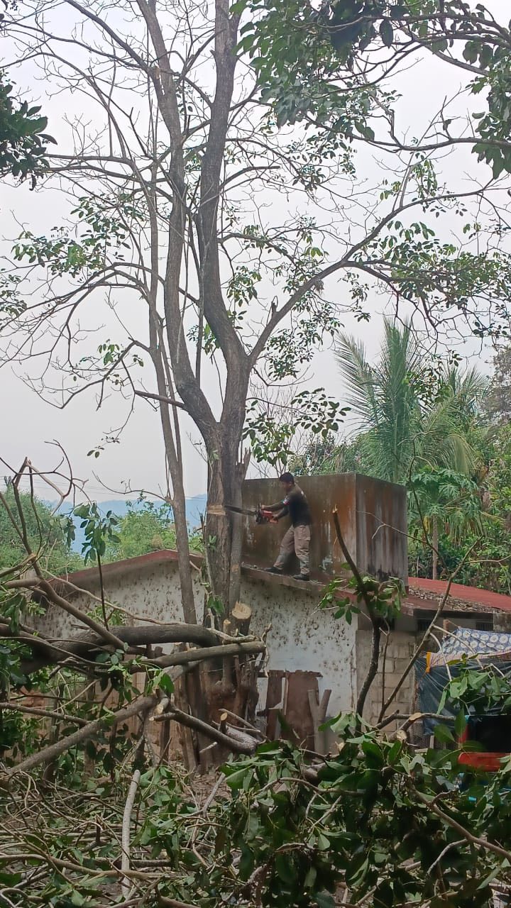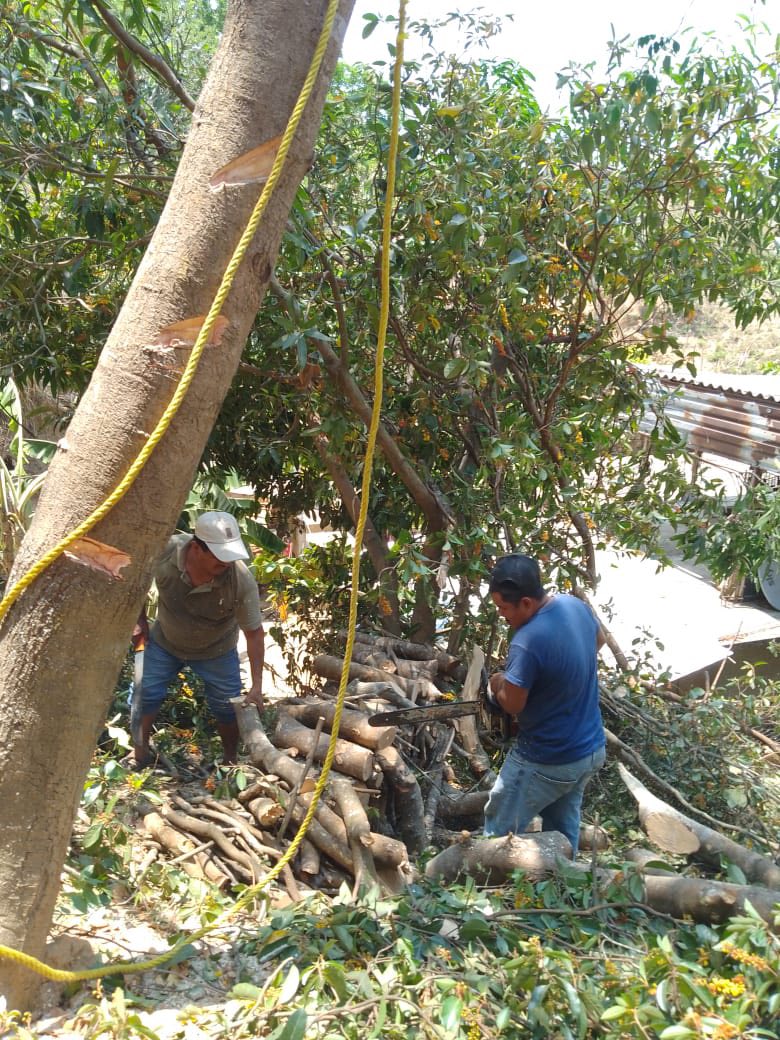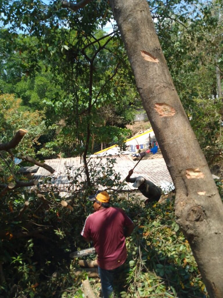 Esta acción se realizó debido a que el árbol representaba un riesgo, ya que estaba por caer sobre una vivienda cercana, priorizando la seguridad de las familias del área. 🌿🏠