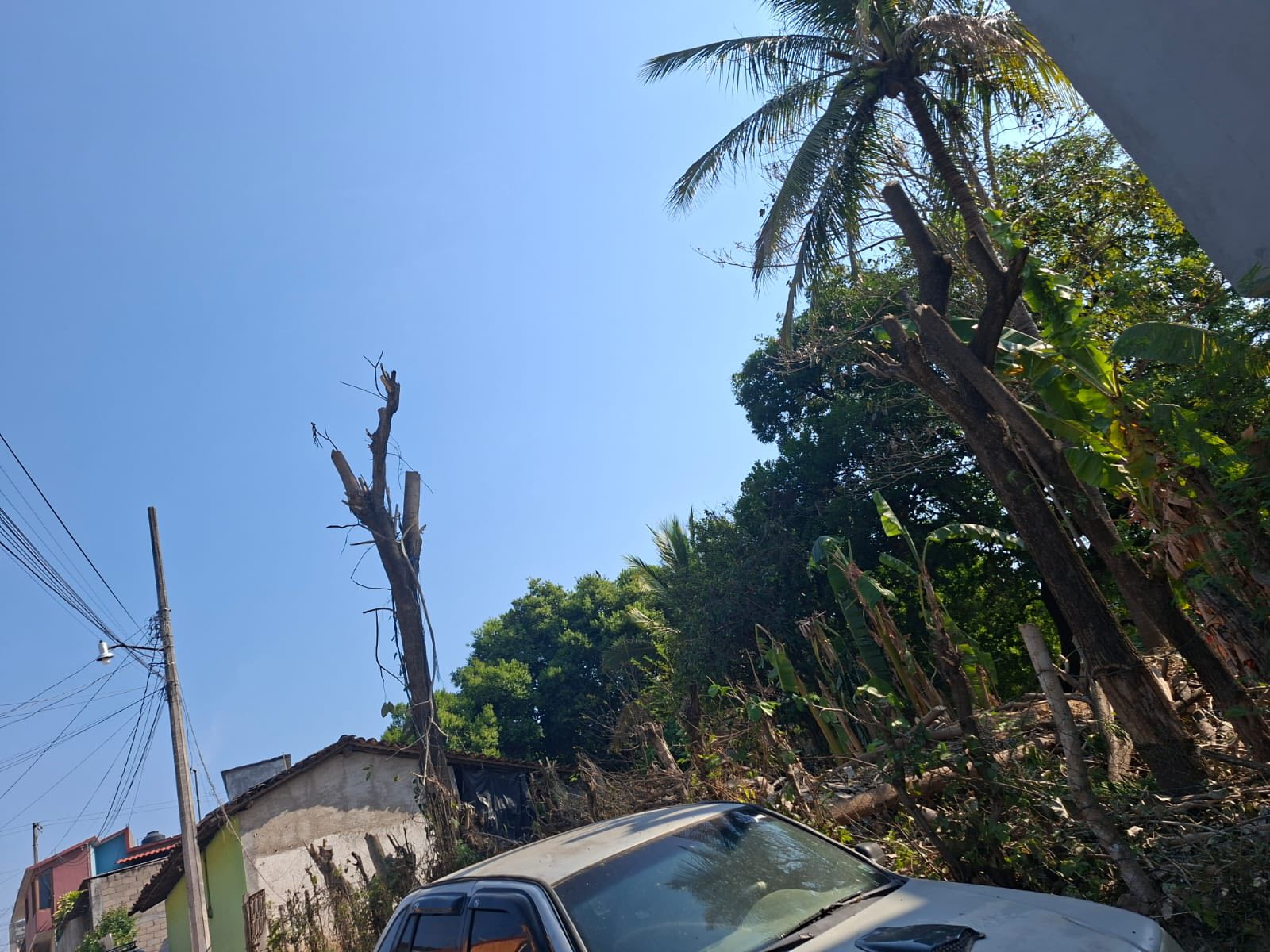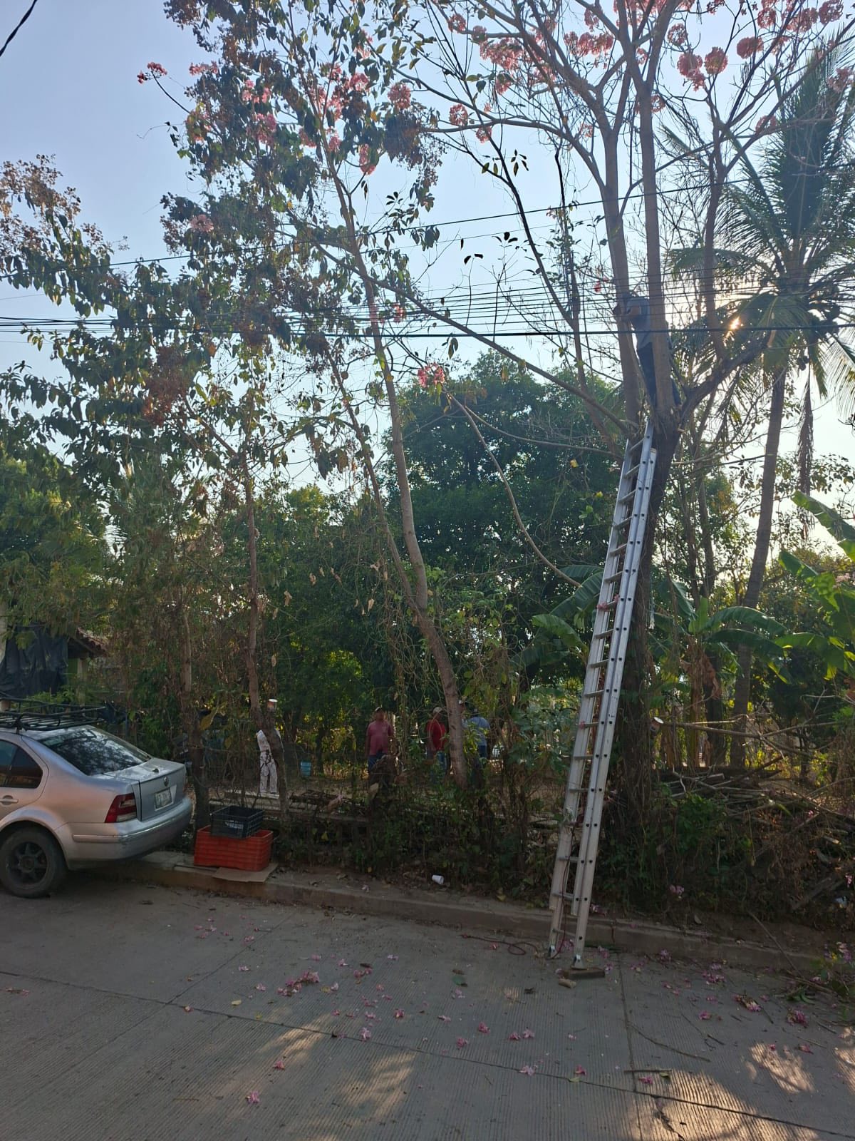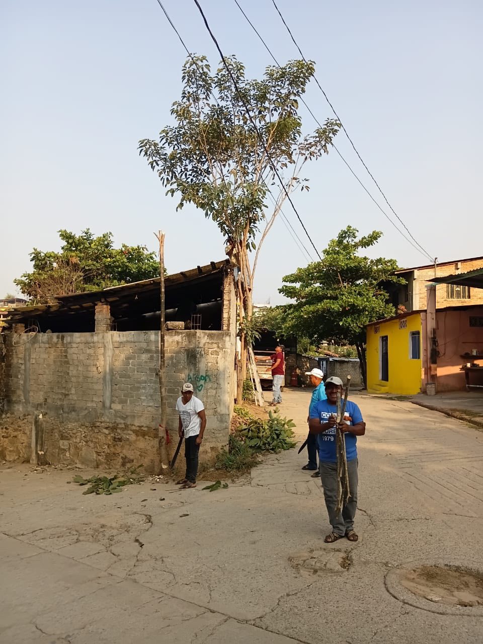 Esta acción se realizó debido a que el árbol representaba un riesgo, ya que estaba por caer sobre una vivienda cercana, priorizando la seguridad de las familias del área. 🌿🏠