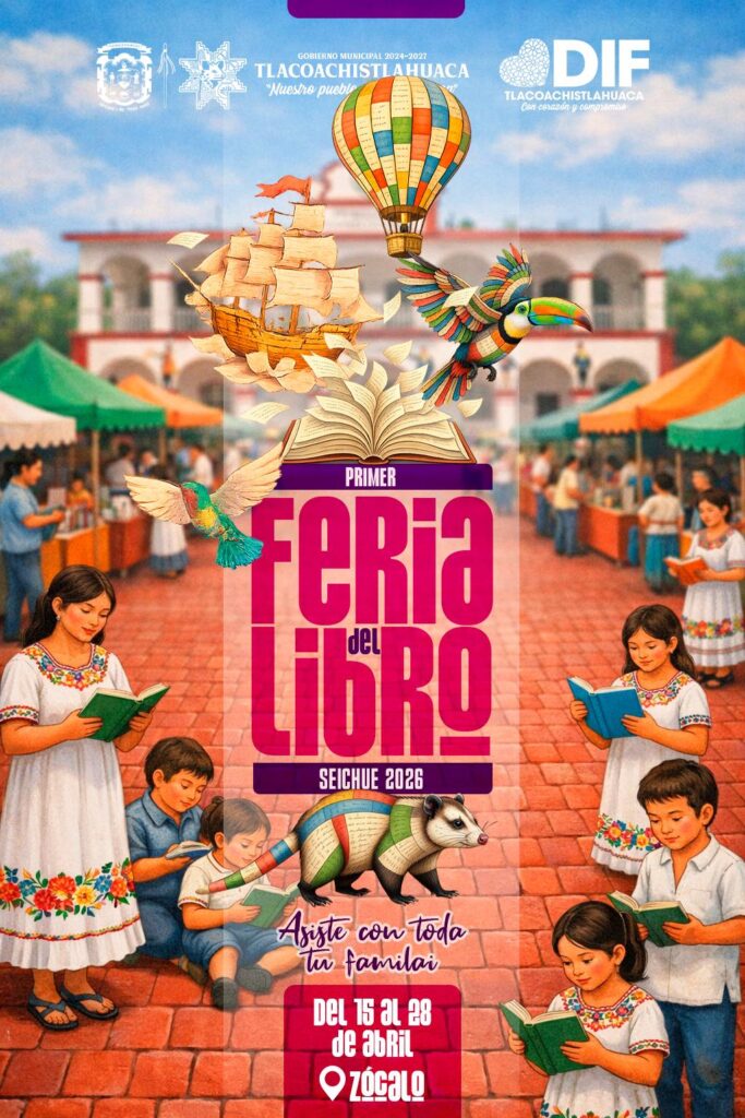En el marco del 23 de abril, Día Mundial del Libro, fecha proclamada por la UNESCO para rendir homenaje a la creatividad, la diversidad, la imaginación y las ideas de los autores, el Gobierno Municipal de Tlacoachistlahuaca que encabeza el Arq. Emmanuel Cuevas Rodríguez, a través de la Dirección de Educación a cargo del Prof. Sergio López López, invita a la población a participar en la Primera Feria del Libro Seichue 2026.