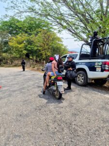 Durante estas acciones, también se instaló un puesto de atención e interacción ciudadana en el crucero de Jiquimilla, donde se realizaron inspecciones preventivas de carácter visual a personas, vehículos y motocicletas, siempre con apego a los protocolos de actuación policial.