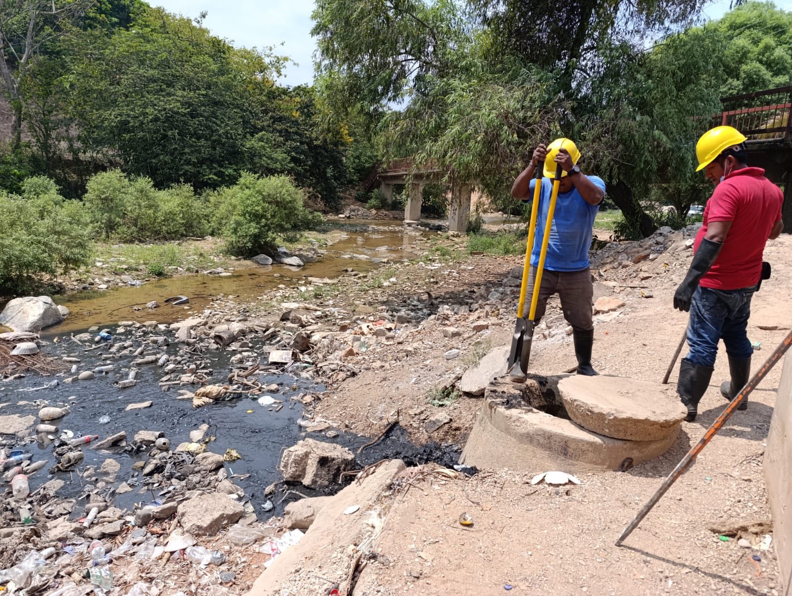 Estas labores consistieron en el desazolve de cinco pozos de visita, así como la atención del colector principal de la red de drenaje, acciones que no habían recibido mantenimiento durante varios años.