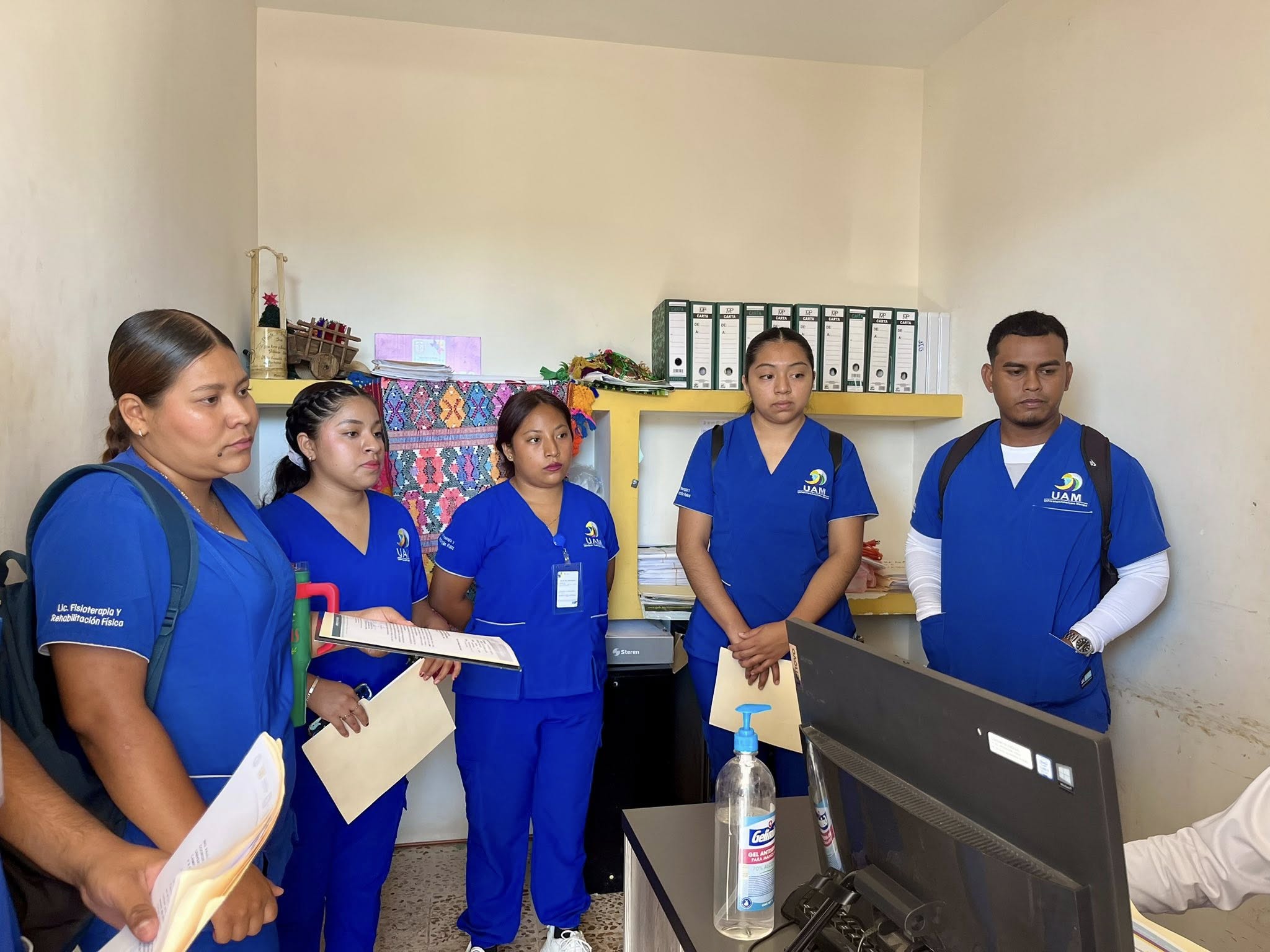 El presidente municipal de Tlacoachistlahuaca, el Arq. Emmanuel Cuevas Rodríguez, junto a la presidenta del DIF Municipal, la Profa. Gudelia Zamora Ocampo, y el oficial mayor, Ing. Aurelio Tello de Jesús, recibieron a fisioterapeutas practicantes de la Universidad (UAM).