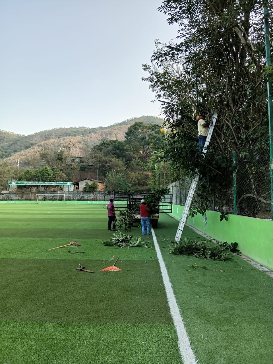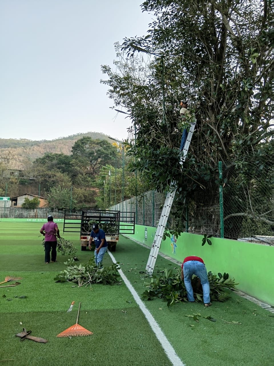 LA COORDINACIÓN DE SERVICIOS GENERALES REALIZÓ TRABAJOS DE PODA DE ARBUSTOS DEL CAMPO DE FÚTBOL DEL BARRIO CHINO