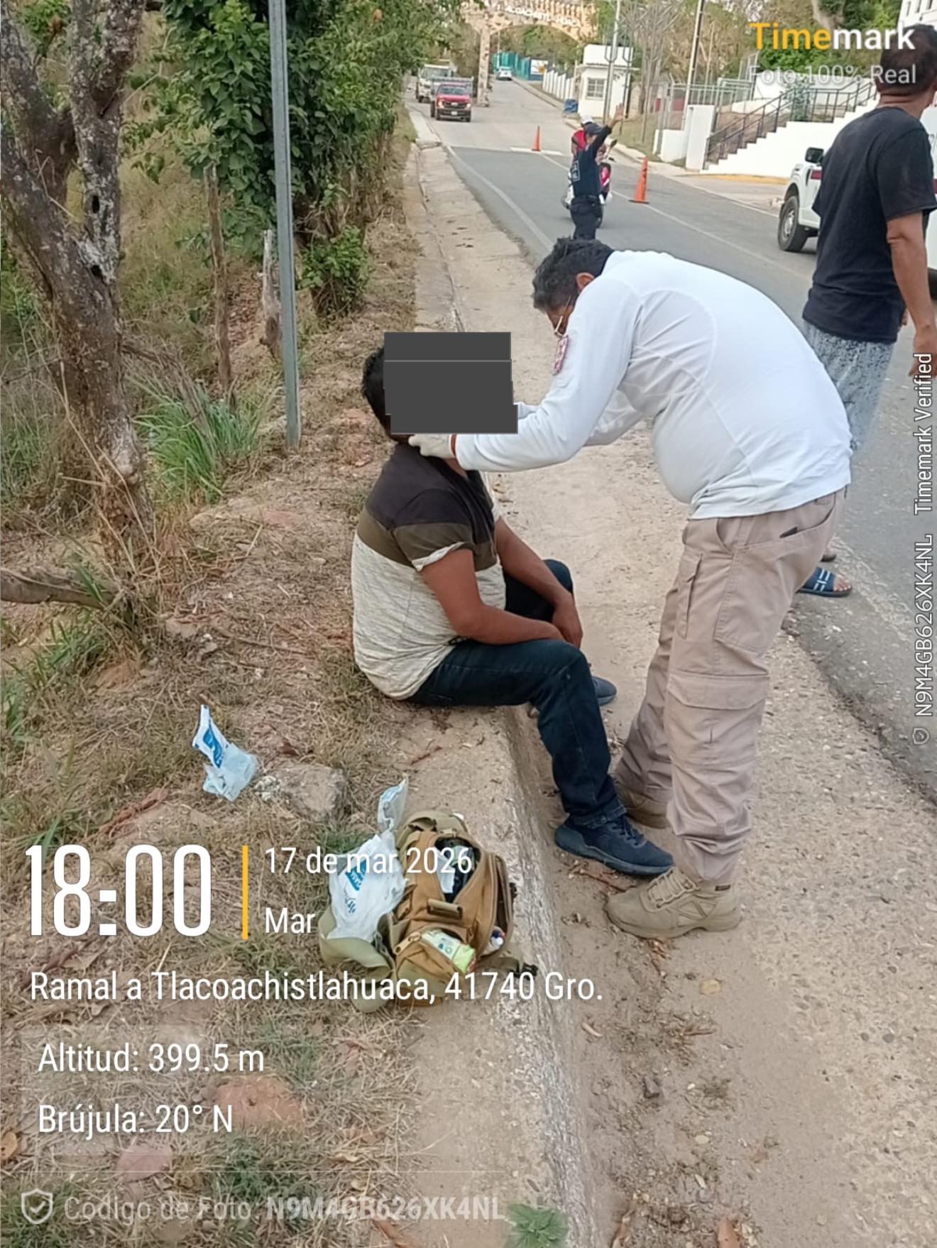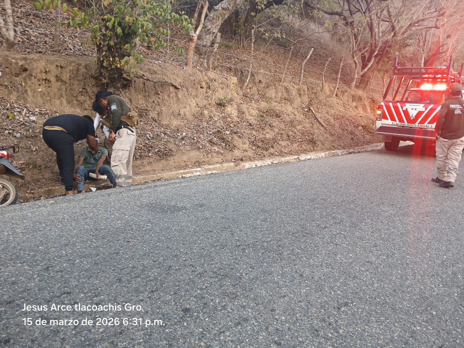 Al arribar al lugar elementos de la policía municipal y protección civil, se encontró a un masculino de 36 años de edad, originario de Cozoyoapan, municipio de Xochistlahuaca. Durante la valoración se detectó que presentaba múltiples contusiones, aparentemente sin fracturas, así como presencia de cuerpos extraños en el ojo izquierdo.