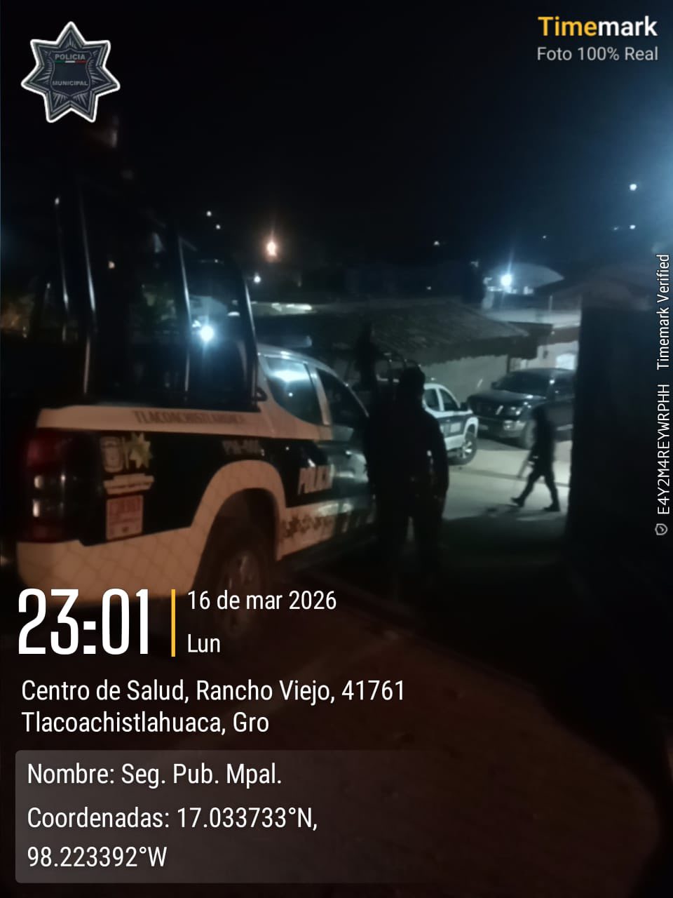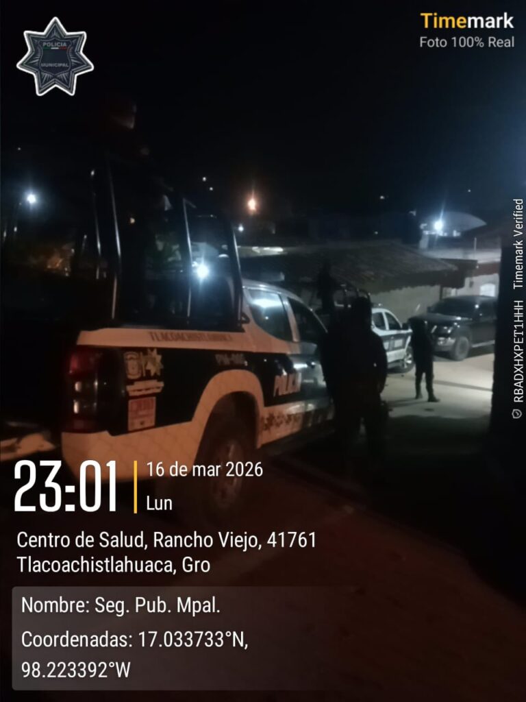 El Gobierno de Tlacoachistlahuaca, que encabeza el Arq. Emmanuel Cuevas Rodríguez, informa que elementos de la Policía Municipal realizaron recorridos de vigilancia y prevención del delito en el tramo carretero Tlacoachistlahuaca–Rancho Viejo, así como patrullajes al interior de la comunidad.