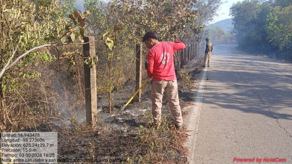 El Gobierno Municipal de Tlacoachistlahuaca que encabeza el Arq. Emmanuel Cuevas Rodríguez, a través de Protección Civil Municipal, atendió el reporte de un incendio registrado entre las localidades de San Isidro y San Pedro Cuitlapan.