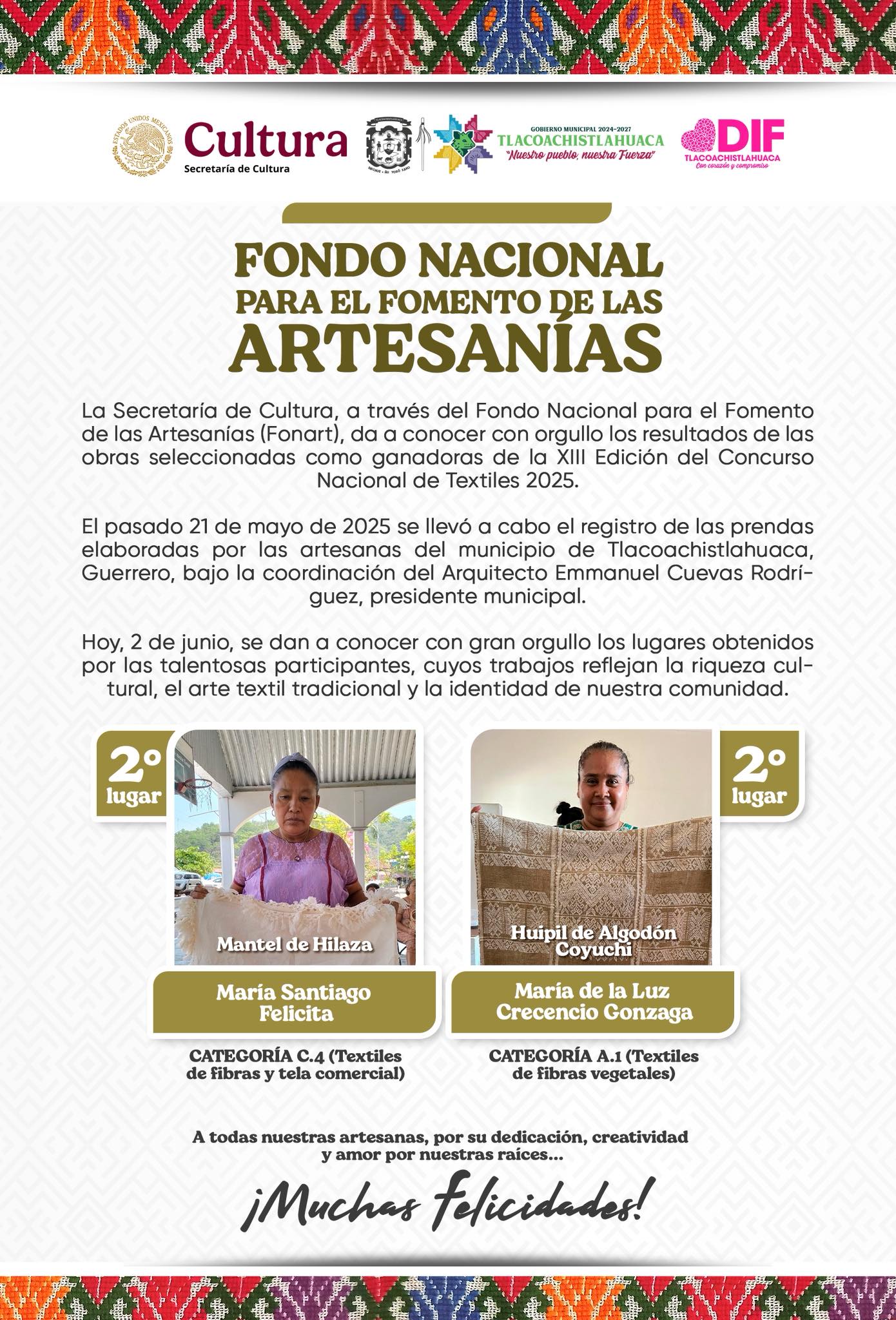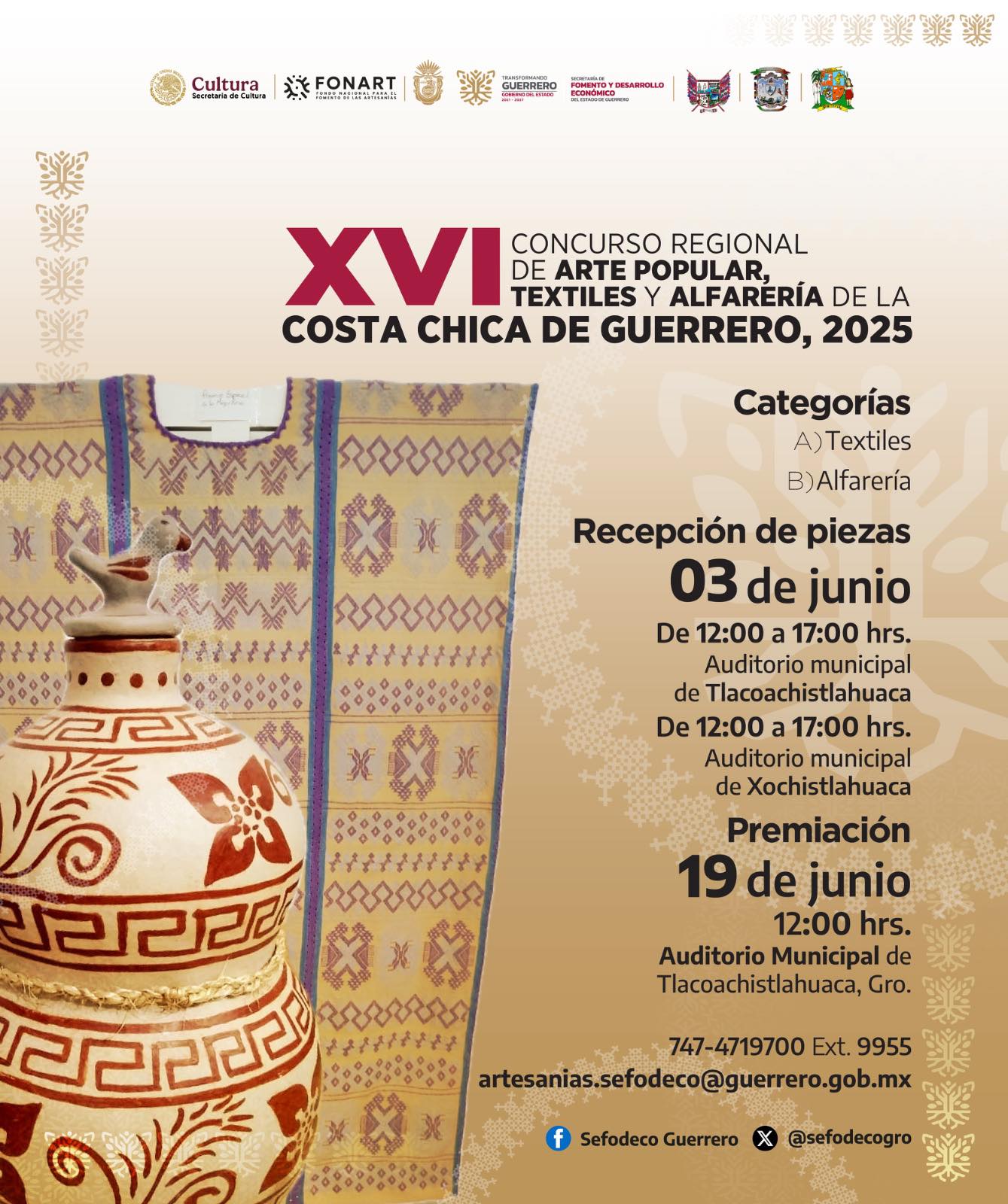 A todas las artesanas de Tlacoachistlahuaca, se les convoca a participar en el XVI Concurso Regional de Textiles y Alfarería de Costa Chica 2025.