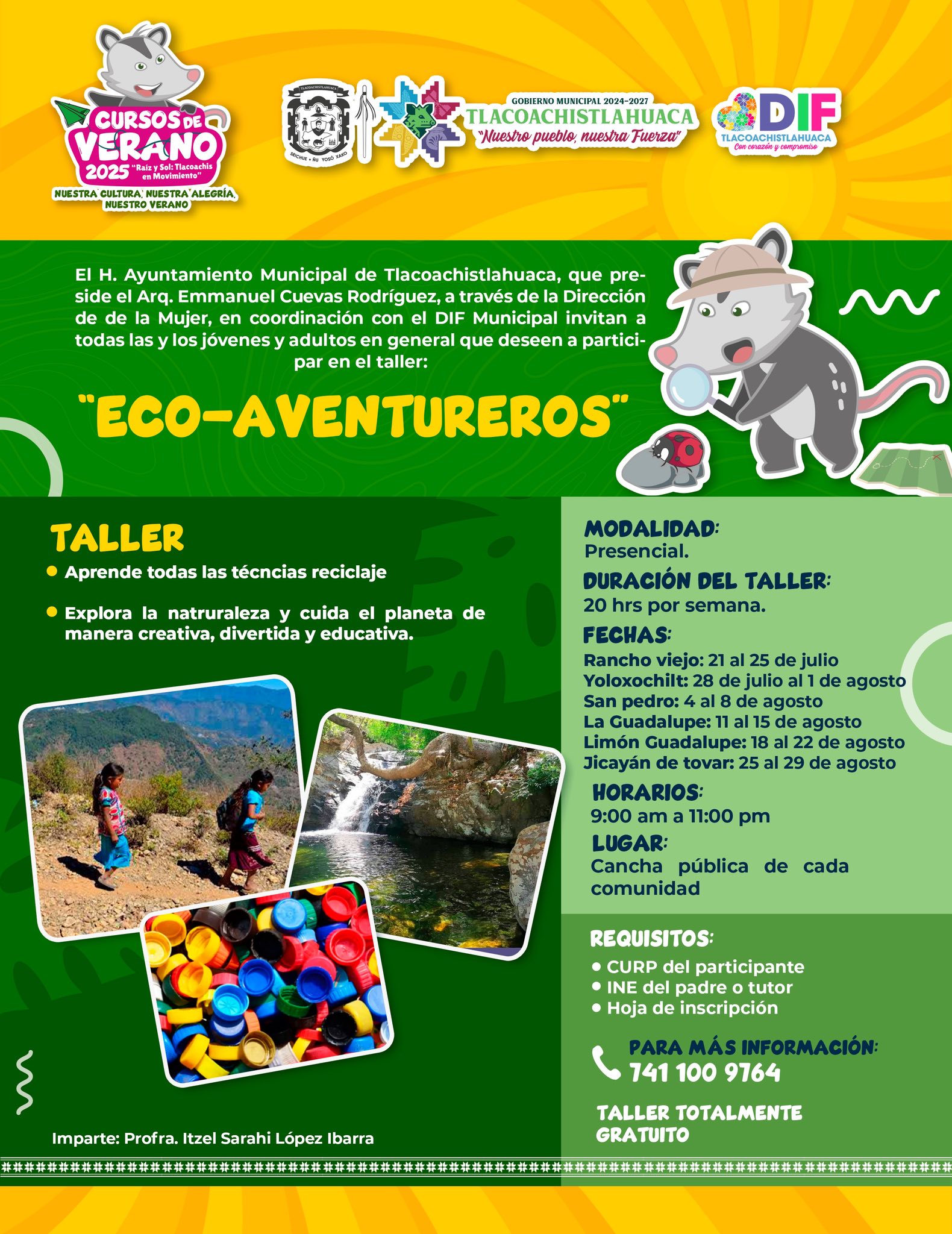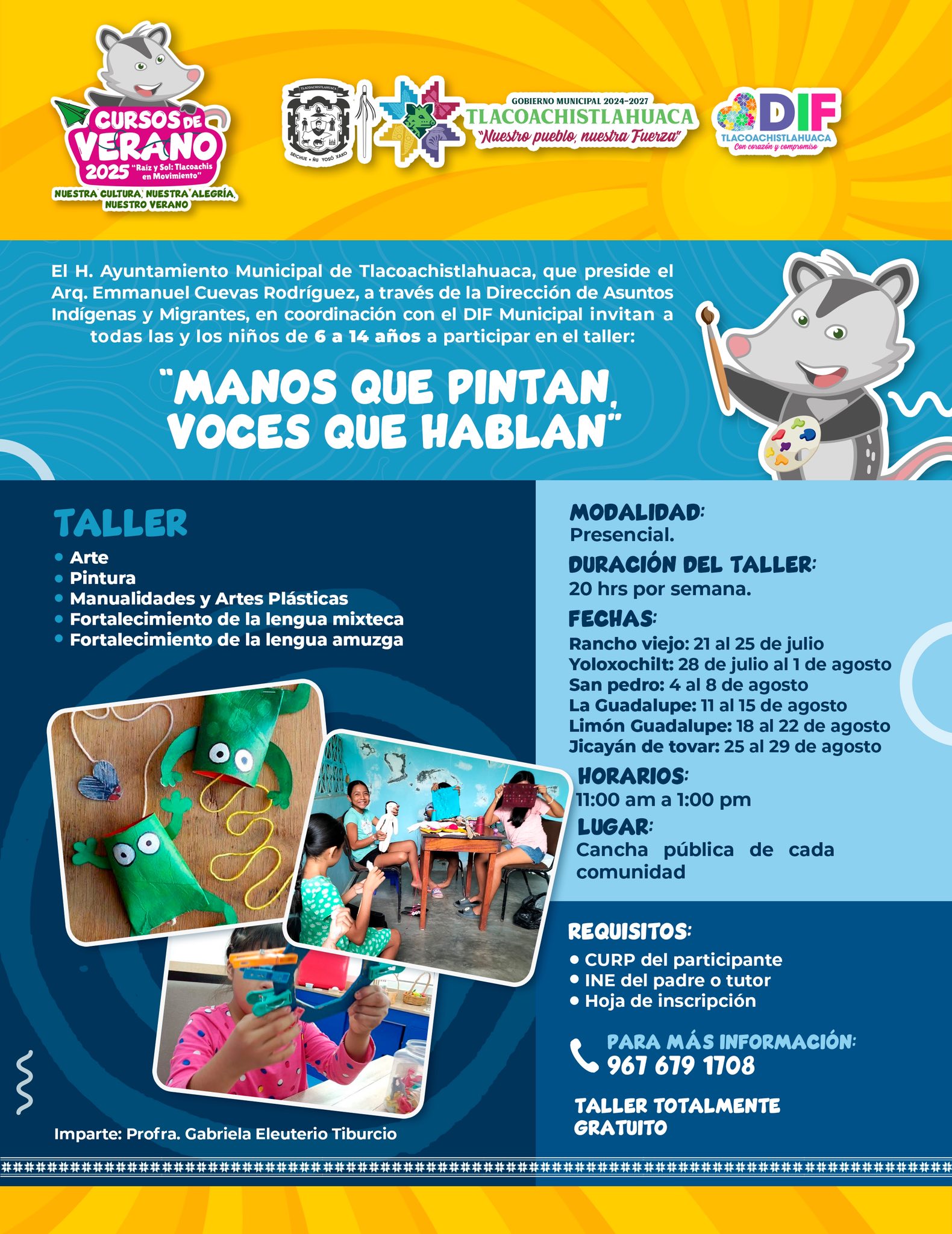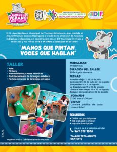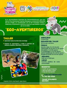 La Dirección Municipal de la Mujer, encabezada por la Profa. Itzel Sarahi López Ibarra, en coordinación con la Dirección de Asuntos Indígenas y Migrantes, a cargo de la Profa. Gabriela Eleuterio Tiburcio, pone en marcha el curso de verano: “EcoAventureros, Manos que Pintan, Voces que Hablan”.