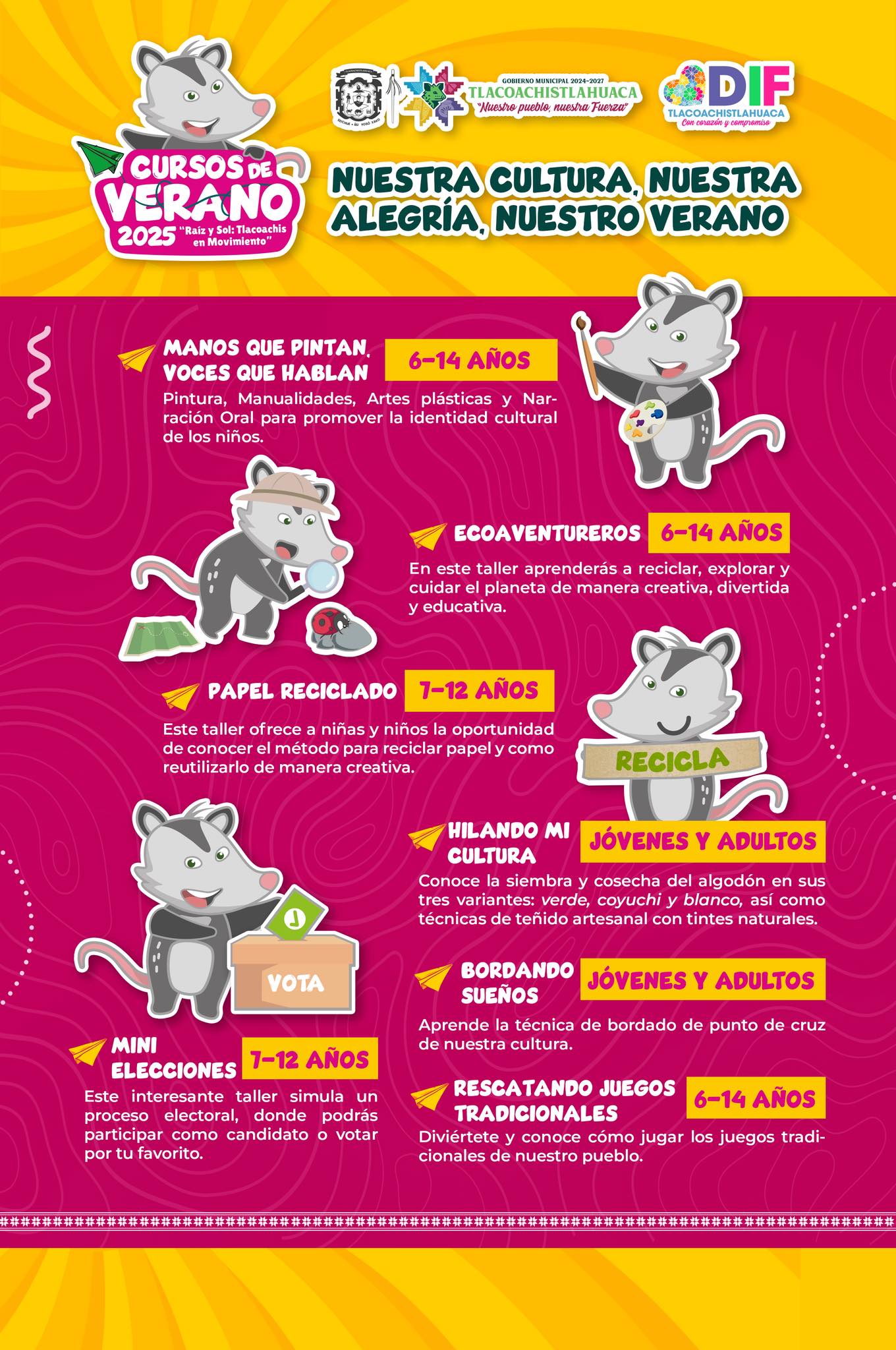 El Gobierno Municipal de Tlacoachistlahuaca, que preside el Arq. Emmanuel Cuevas Rodríguez, a través de la Dirección Municipal de la Mujer, encabezada por la Profa. Itzel Sarahí López Ibarra, en coordinación con la Dirección de Asuntos Indígenas y Migrantes, a cargo de la Profa. Gabriela Eleuterio Tiburcio, dirigen el curso de verano: